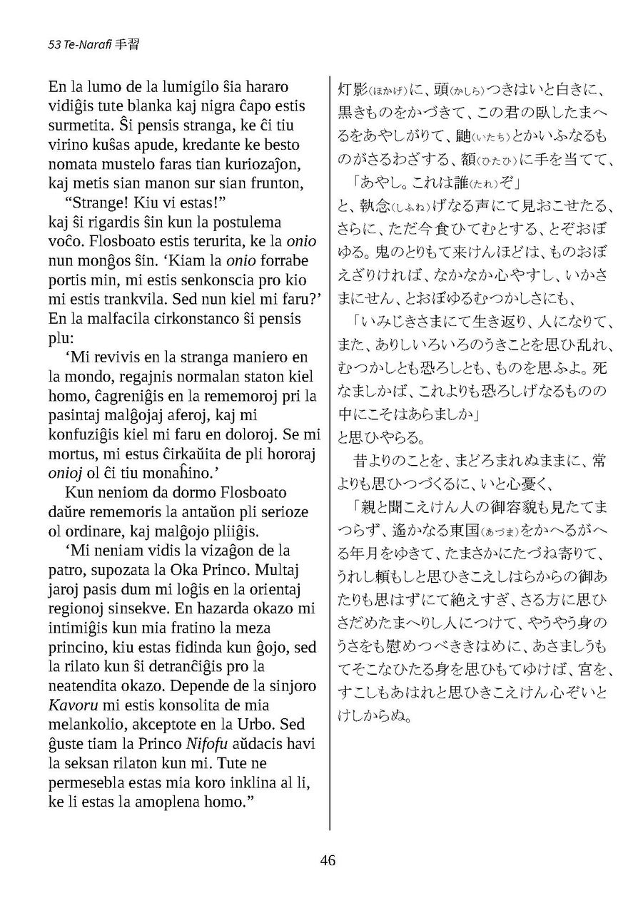 エスペラント訳 源氏物語第53帖 手習(46) Genĝi 53 Kaprica Skribado(46) 2023年12月02日 エスペラント訳 源氏物語第53帖 手習(46)Rakontaro de Genĝi - 53 Kaprica Skribado(46)http://esperas.info/index.php?53kaprica_skribado国立国会図書館本国立図書館857-119与謝野晶子訳谷崎潤一郎訳 < 前の記事次の記事 > コメント コメントフォーム 名前 コメント 記事の評価 リセット リセット 顔 星 情報を記憶 コメントを投稿する